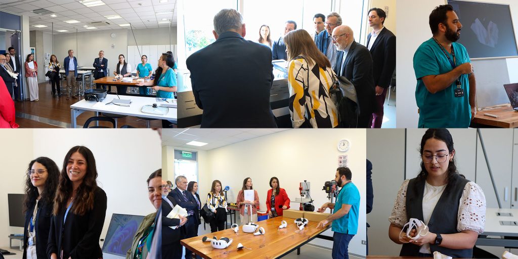 Una vez finalizadas las palabras de las autoridades, los asistentes fueron parte de un recorrido por las instalaciones, iniciando por el nuevo laboratorio de investigación e innovación para el Departamento de Kinesiología y las salas que conforman la unidad de simulación ubicada en el primer piso del edificio, lugares pensados en el desarrollo y formación académica.